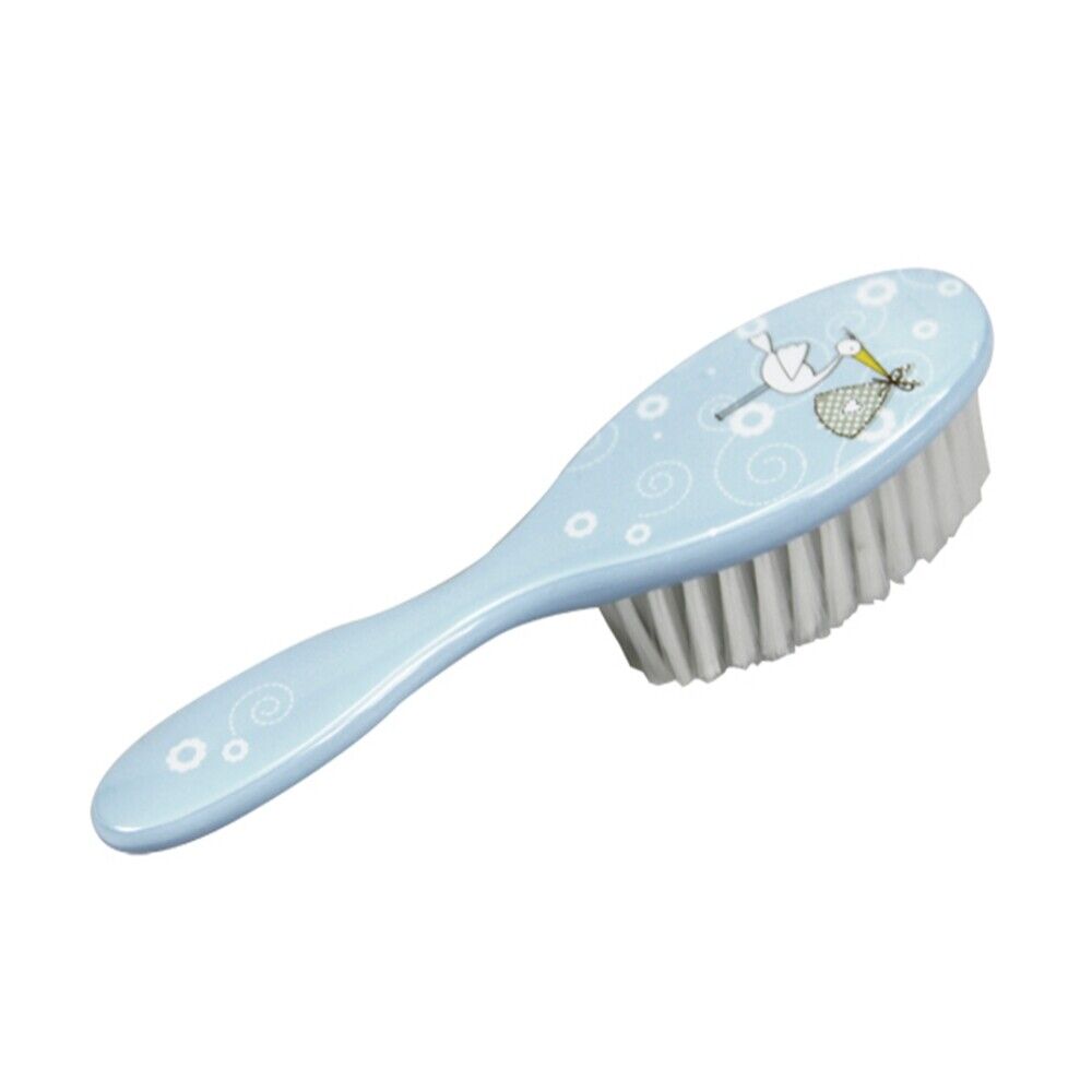 Accessoire Cheveux - Brosse Bébé Poils Nylon Bleu dessin Cigogne - 15 x 4 cm