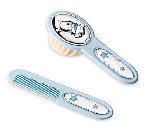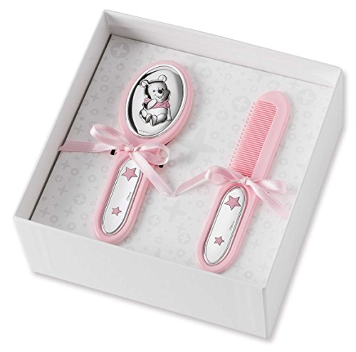 Disney Baby Petite enfance - Coffret cadeau avec brosse à cheveux et peigne indispensable entre les accessoires pour bébé avec finitions Winnie l'ourson en argent