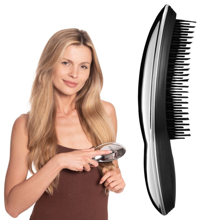 Brosse à Cheveux - AJK - Argentée - Démêlage Doux - Pour Cheveux Fins et Abîmés - Utilisation Sèche et Mouillée