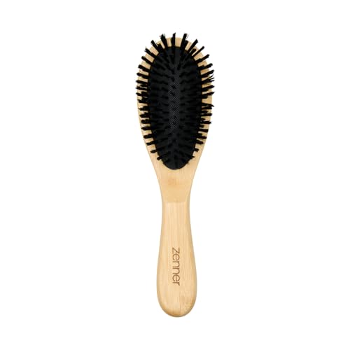 Zenner Brosse ovale avec manche en bambou – Brosse rembourrée avec soixante-dix pour cent de poils synthétiques doux et 30% de nylon – Pointes antistatiques – Pour cheveux fins à moyens – Naturel