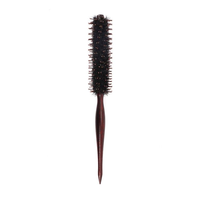 Petite brosse ronde en poils de sanglier pour brushing coiffage - Manche en bois - Poils naturels doux pour cheveux courts et fins