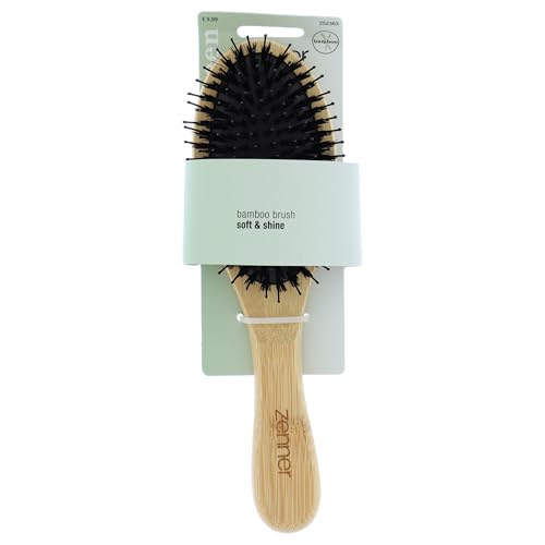 Zenner Brosse Ovale Bambou/Nylon – Brosse Coussin avec Poils Synthétiques Souples et Manche en Bambou – Pour Cheveux Fins à Moyens – Confort et Éclat au Quotidien