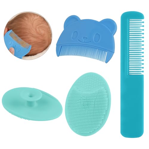 Aolso Peigne à Cheveux pour Bébé, 3pcs Peigne pour Bébé Brosse de bain pour bébé, brosse de tête de berceau pour bébé, brosse de massage en silicone, peigne pour bébé, peigne pour enfants (bleu)
