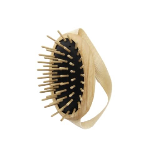 TEK – Brosse Anti-Chute Massage Cuir Chevelu avec Sangle en Bois de Frêne – Fabriquée à la Main en Italie – Stimule la Croissance des Cheveux – Idéale Shampooings Soins – 8,5x5 cm – Végan et Durable