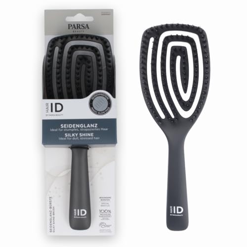 PARSA Beauty Hair ID Brosse à cheveux en spirale, aspect satiné, de qualité supérieure, avec poils naturels Magic Glow et protéines de soie, tête de brosse flexible pour un massage en douceur du cuir