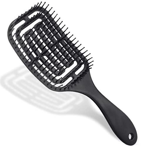 Vinabo Brosse à Cheveux Démêlante - Ne Tire Pas Professionnelle Incurvée Ventilée pour Cheveux Mouillés et Secs, Brosse de Massage, pour Femme, Homme & Enfant, Noir