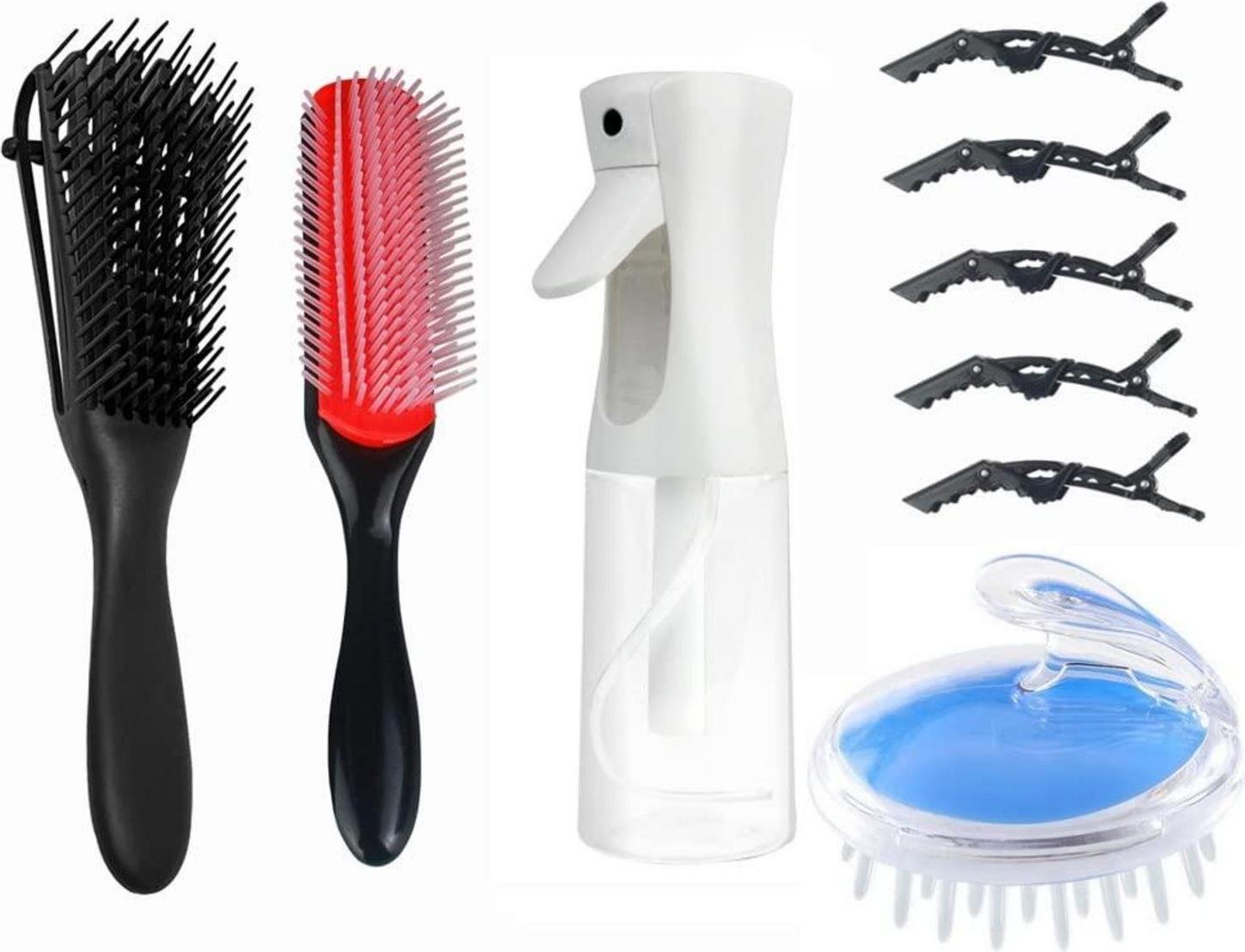 Set de brosses à cheveux bouclées avec brosse démêlante, 9 rangées, flacon pulvérisateur pour cheveux, brosse de massage, pinces à cheveux