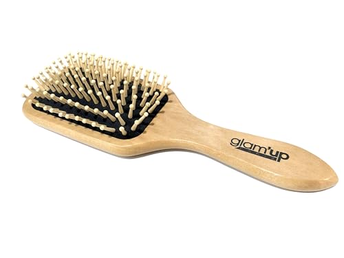 Glam’Up Paris - Brosse en Bois Carrée à Soufflet avec Manche - Brosse Démêlante à Cheveux - Légère et Durable - Poignée Ergonomique - Picots de Massage du Cuir Chevelu