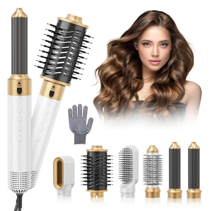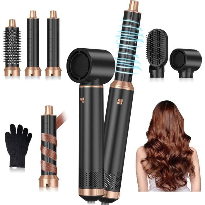 7MAGIC Air Styler 6 en 1, Sèche Cheveux Ionique, Boucleur a Cheveux Automatique, Brosse Soufflante, Brosse Lissante, Sans Dommages De Chaleur, avec Sac De Voyage, pour Les Occasions Spéciales