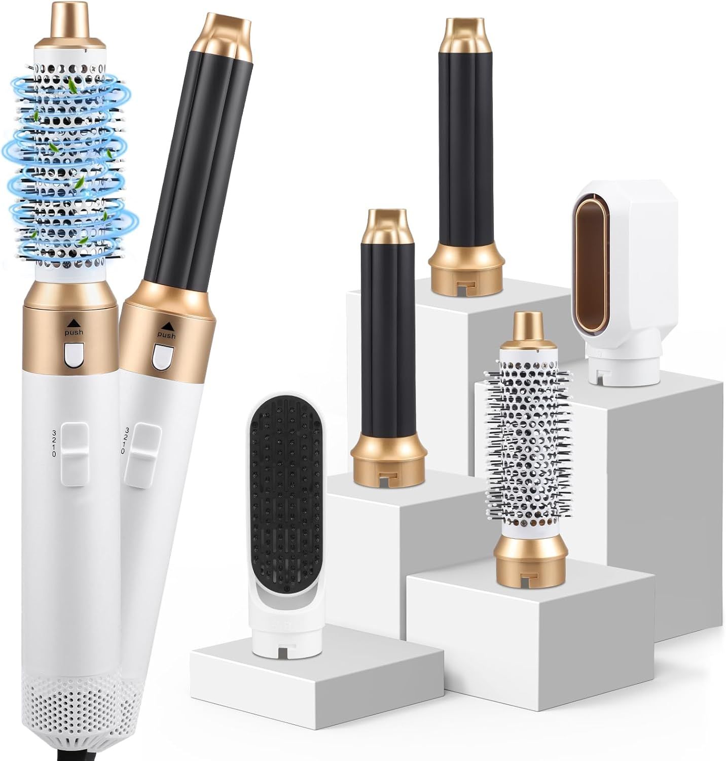 Atopskins Air Styler 6 en 1 Airbrush Hair Styler Air Brush Pro Cheveux Avec Seche Cheveux Brosse Soufflante, Brosse Seche Cheveux, air Boucleur, pour Sécher, Boucler, Lisser
