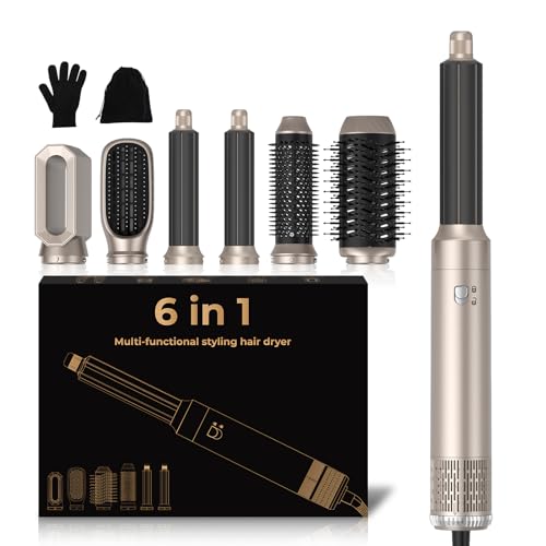 Air Styler 6 en 1 Hair Styler Air Brush 6 en 1, Airbrush 6 en 1 avec Seche Cheveux, Brosse Soufflante, Fer a Boucler, Thermal Brush, Brosse Lissante Seche Cheveux 6 en 1 Cadeaux pour Femmes Styling