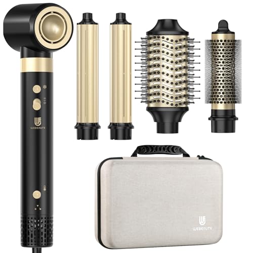 webeauty 6 en 1 Hairstyler, 110,000 TR/MIN, 30M/S, 500 Millions d'ions Négatifs Sèche Cheveux Professionnel Avec Brosse Soufflante et Air Boucleur Cheveux,Noir