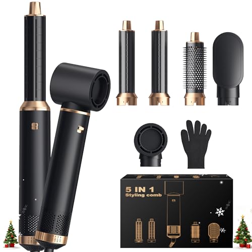 Airbrush 5 en 1 Seche Cheveux 5 en 1, Brosse Soufflante 5 en 1 Avec Seche Cheveux Boucleur, Brosse Souflante, Thermal Brush, Air Styler 5 en 1 Pour Sécher, Boucler, Lisser, Cadeau Noel Femme
