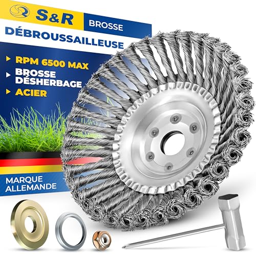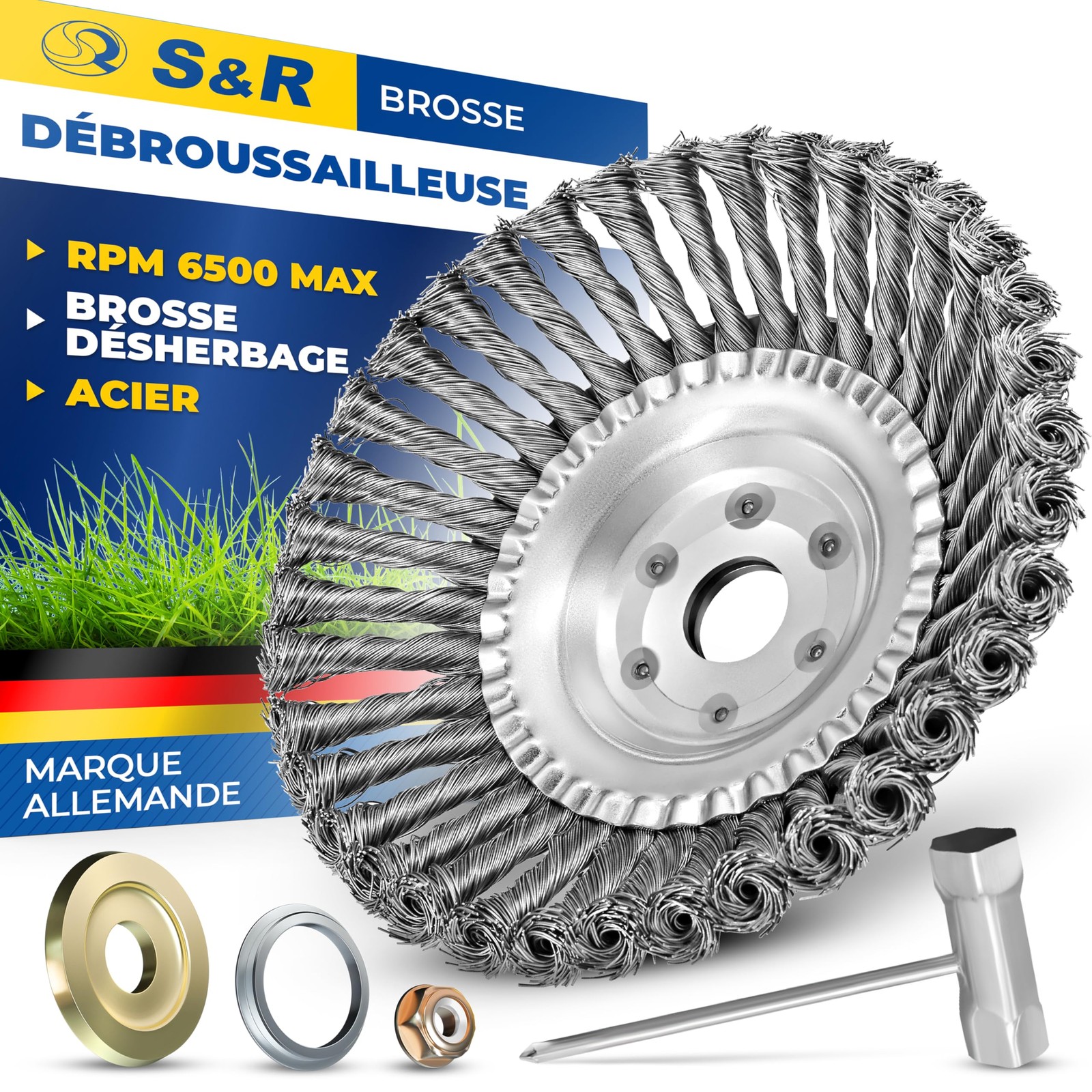 S&R Brosse Débroussailleuse Thermique Universelle Acier PREMIUM 200x25,4 mm. Tête Débroussailleuse Tondeuse à Désherbage Mauvaises Herbes.