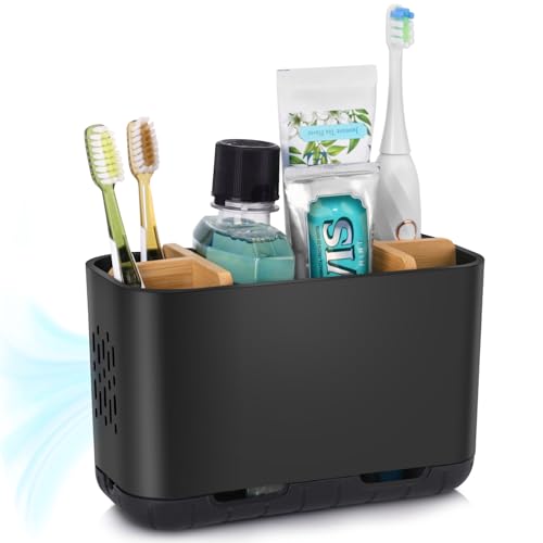 Porte Brosse à Dents Antidérapant, Support Brosse a Dent Electrique 6 Compartiments Amovible, Rangement Brosse a Dent Stand, Multifonction Organisateur Salle de Bain Familiale (Noir Mat)