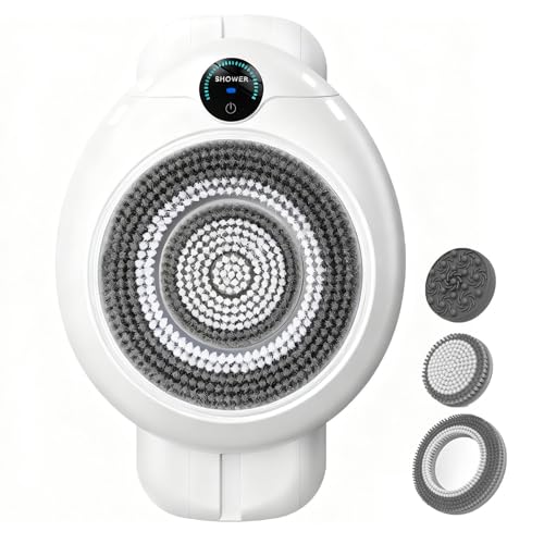 Brosse exfoliante électrique pour Le Dos sous la Douche, Fixation Murale, autonettoyante corporelle Mains Libres, 4 Vitesses, 2 têtes interchangeables, pour Un Nettoyage en Profondeur
