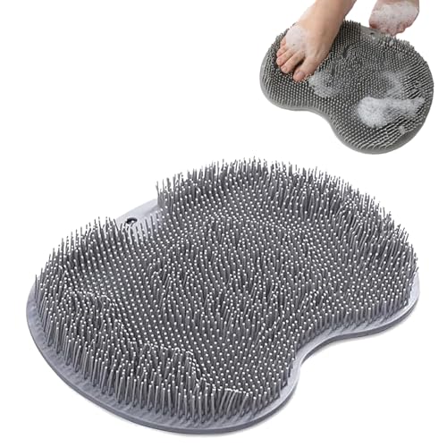 FENGCHUANG Laveur de Pieds de Douche 30 x 22 cm Foot Scrubber Foot Scrubber Douche avec Antidérapant Ventouses Brosse Dos Circulation et Soulage Les Pieds Fatigués avec Ventouses (Gris)