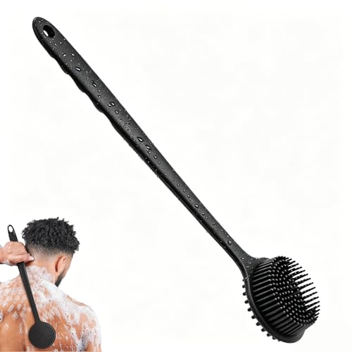 Mulbijeo Brosse de Dos en Silicone, Brosse de Douche Double Face avec Long Manche, pour Exfoliation et Massage, Production de Mousse Riche, pour Homme