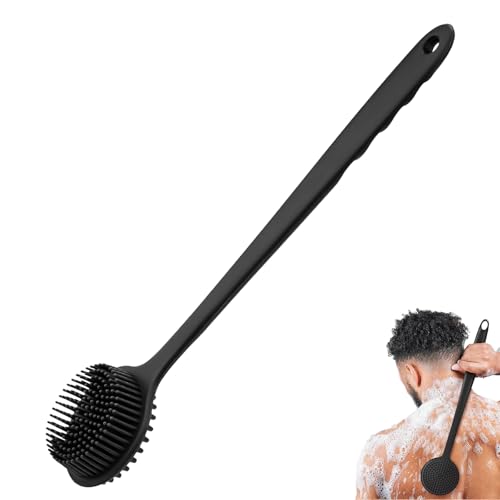 Brosse à récurer pour le corps en silicone, à long manche, pour le dos, pour la douche, pour le corps, la douche et le dos (noir)