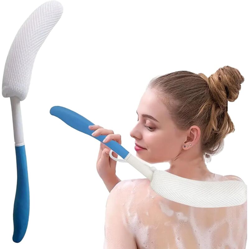 Brosse de Bain Manche Long Incurvé Éponge Douce Nettoyage du Corps Brosses de Douche Exfoliantes Brosse pour le Dos Exfolie le Corps,blue.38cm