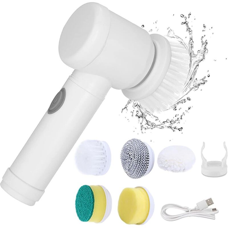 Brosse Nettoyage Electrique 5800 RPM, Electric Clean Brush Rechargeable avec 5 Têtes, Spin Scrubber pour Salle de Bain et Cuisine, IPX7 Étanche