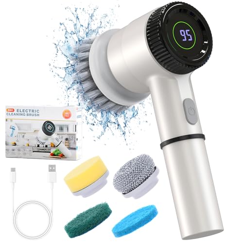 Brosse de Nettoyage lectrique sans Fil,Brosse de Nettoyage Electrique,5 têtes Brosse Nettoyage Salle de Bain, avec 2 vitesses et écran lcd intelligen