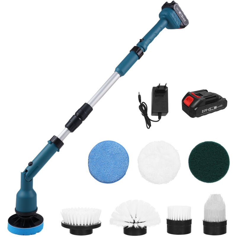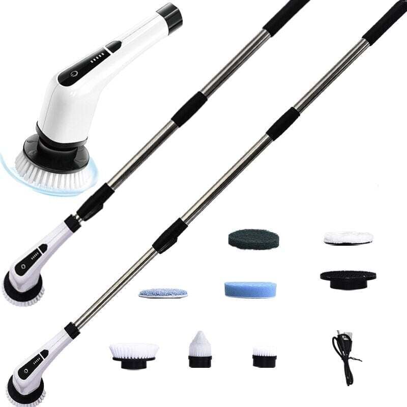 Brosse électrique rotative sans Fil avec 8 têtes de Brosse remplaçables et poignée d'extension réglable, Brosse de Nettoyage électrique pour Salle de Bain, Cuisine, Voiture, carrelage, Mur, Sol,