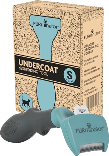 FURMINATOR Outil de Toilettage pour Chat à Poils Courts de Petite Taille – Brosse Anti-mue S à Manche Ergonomique - Elimine 90% des Poils Morts - Nettoyage en 1 clic - Emballage Recyclable
