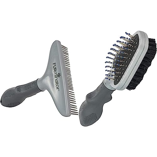 FURMINATOR Peigne de démêlage pour chiens et chats à pelage épais – Démêle les poils & Double brosse - A double face – Face Peigne : Démêle les poils – Face Brosse : lisse et lustre le pelage