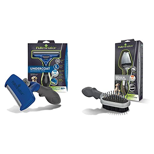 FURMINATOR PREMIUM Outil de Toilettage Pour Chiens de Grande Taille à Poils Longs & Double brosse - A double face – Face Peigne : Démêle les poils – Face Brosse : lisse et lustre le pelage