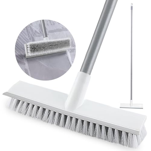 Brosse à récurer pour Sol avec Long Manche de 137,2 cm – Poils rigides 2 en 1 avec raclette pour Nettoyer la Cuisine, Le Mur, Le carrelage, Le Joint, la Baignoire et la Moquette, Brosse à récurer Le
