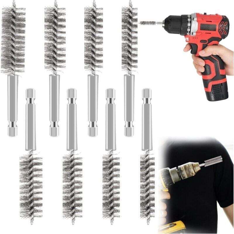 Brosse métallique pour perceuse - 9 pièces - 3 types - Kit de brosse à tige 1/4 pouce - Pour rouille