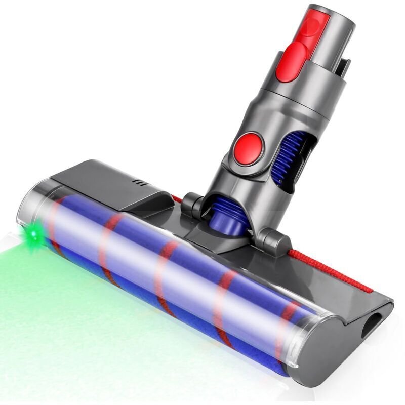 Brosse motorisée avec lumière verte compatible pour Dyson V10 V8 V11 V15 V7 Rouleau souple, convient pour les sols durs parquet et coins étroits