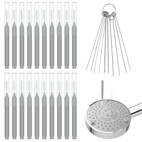 30pcs Kit Nettoyant Pommeau de Douche, Brosse Nettoyage Pommeau de Douche Multi-Tailles Brosse de Nettoyage Anti-Colmatage pour Salle de Bain Petit Trou Espace Buse Fente de Fenêtre (Gris)