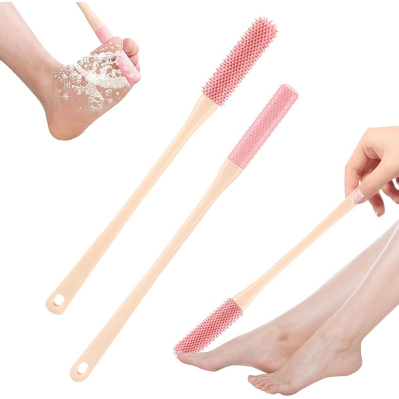 2 pièces Brosse pour Pieds de Douche,Brosse De Nettoyage Des Espaces Entre Les Orteils En Silicone,Brosse à pied avec long manche Pour personnes
