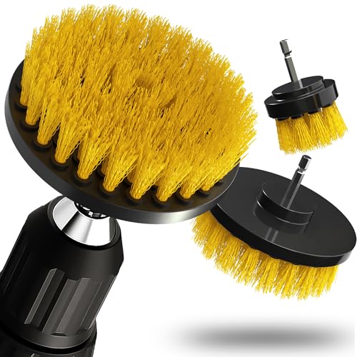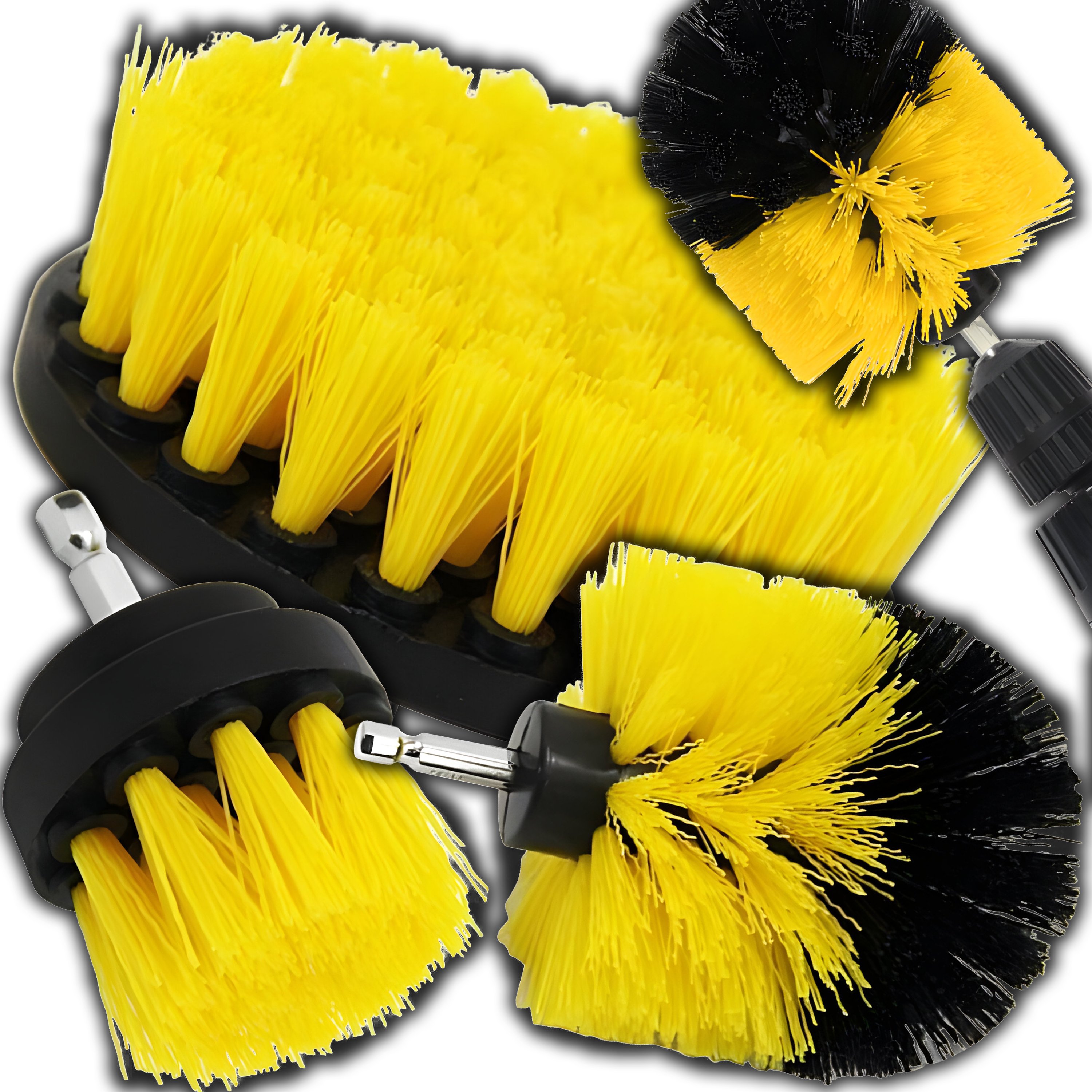 3X Set Brosse de nettoyage Embout de brosse Embout pour perceuse Visseuse sans fil Nettoyage Brosse de nettoyage voiture Brosse pour bouteilles Jaune 3 pièces Retoo