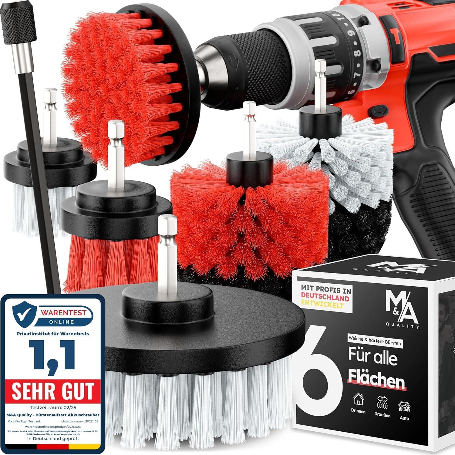 Brosse pour visseuse sans fil [lot de 6] Nettoie universellement voiture, jantes, rembourrage, carrelage et autres I Brosse de nettoyage pour visseuse sans fil I Brosse pour visseuse sans fil