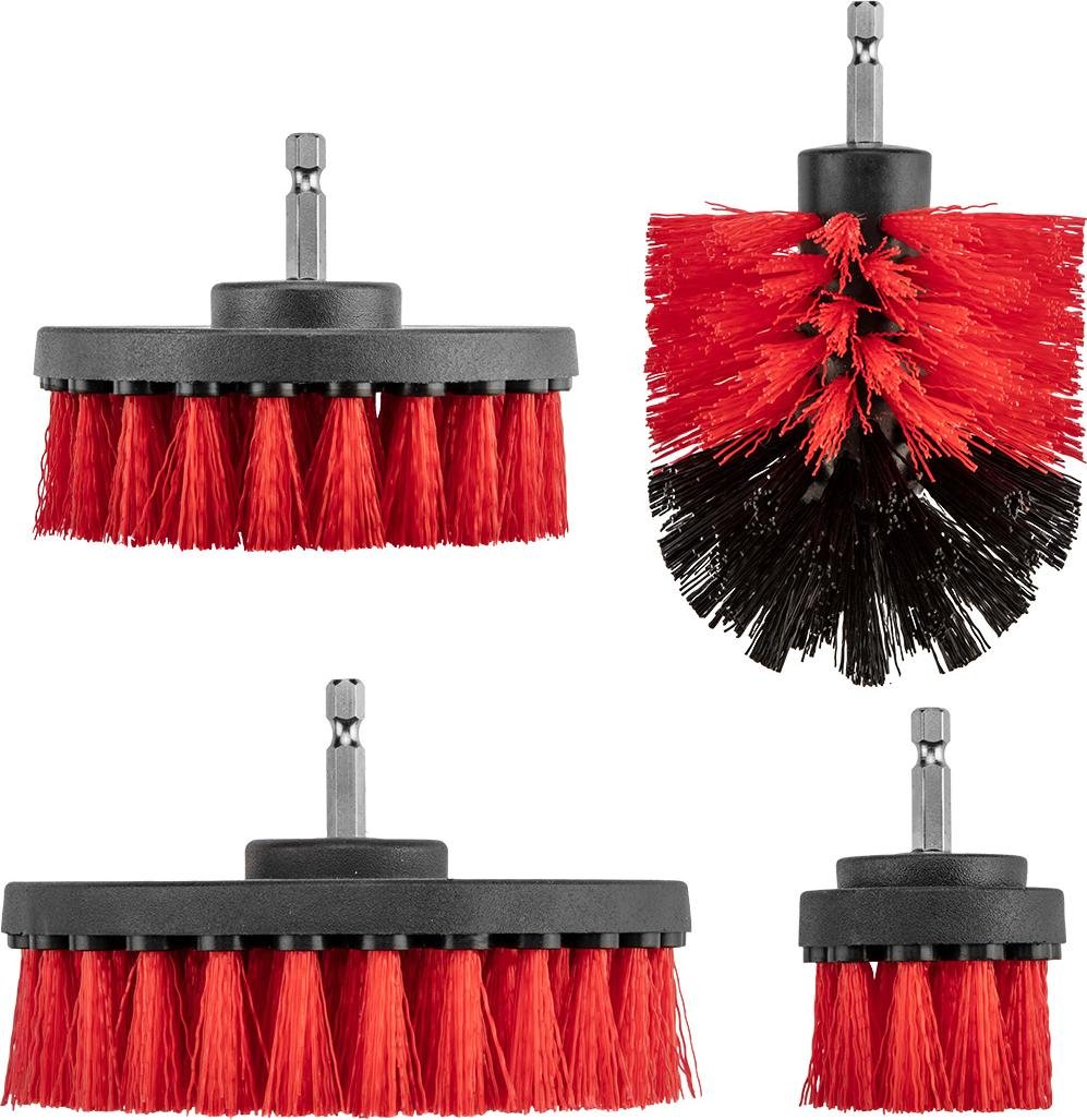 GRAPHITE Kit de brosses de nettoyage [4 pièces] pour perceuse, visseuse sans fil - Nettoie universellement la voiture, les jantes, les coussins, les carreaux & plus, mi-dur