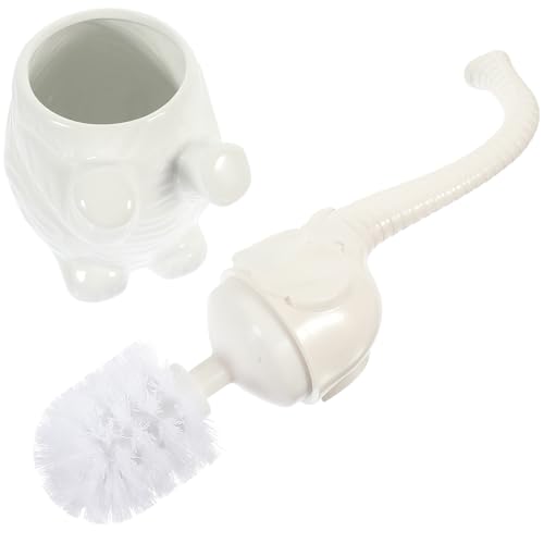 KICHOUSE Brosse de Nettoyage WC Éléphant Manche Antidérapant et Support en Céramique Blanc pour Salle de Bain Hôtel ou Bureau, Kit Brosse à Bol Pratique