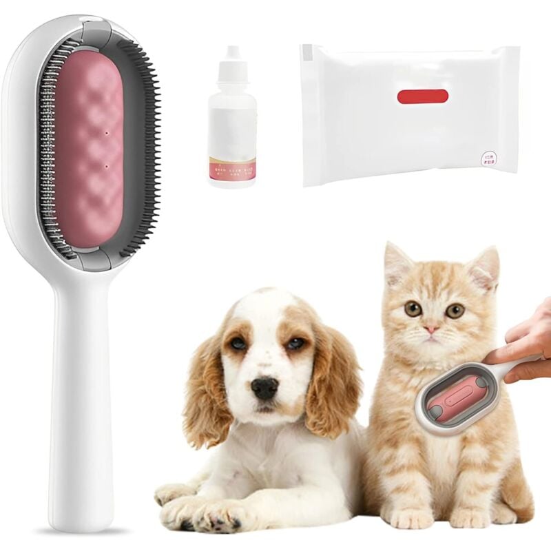 4 en 1 Peigne Epilation pour Animaux Compagnie, Brosse chien avec réservoir d'eau, Brosse chat avec lingettes humides, Brosse poils animaux, pour
