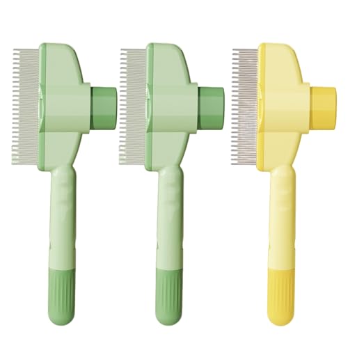 Lot de 3 Peigne d'Épilation Animaux Compagnie, Brosse Toilettage Chat, Peigne D'épilation Animaux Compagnie, Peigne Anti-Puces Brosse Poils Chat pour Poils Courts et Longs Chats Chiens (2Vert+1Jaune)