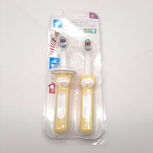 MAM Lot de 2 brosses à dents pour bébé, manche compact, ergonomique et antidérapant, avec protection de sécurité, tête très petite et poils extra doux, neutre, lot de 2