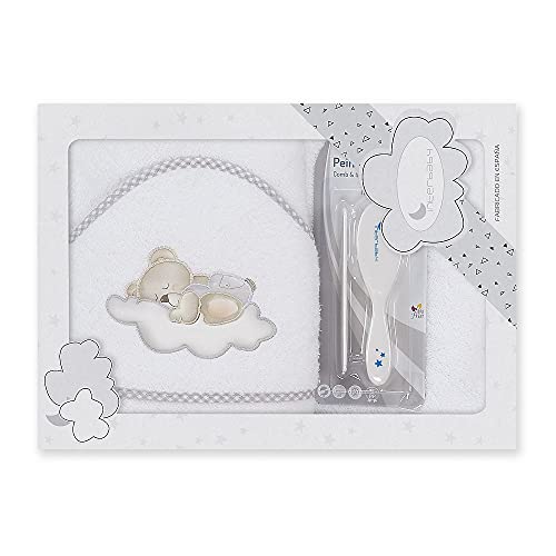 Interbaby Serviette à capuche pour bébé OSITO BAÑERA en blanc et gris avec Set de Brosse et Peigne - 900 g