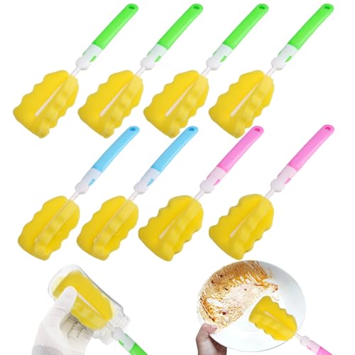 8 Pièces Brosse d’Éponge de Bouteille, Goupillon Biberon en Eponge avec Long Manche, 28 cm Nettoyage de la Tasse en Verre Éponge, Brosse Bouteille pour Nettoyage Biberons, Tasses, Bouilloires