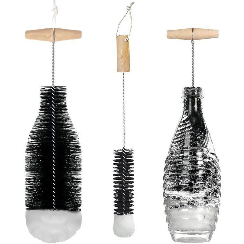 Brosse de nettoyage pour bouteille et carafe avec long manche - Outil de cuisine essentiel pour atteindre facilement les zones difficiles (section courte 30 cm)