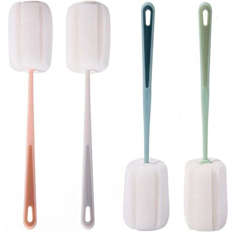 SDKZBFC 4PCS Brosse éponge pour gobelets,Brosse éponge Douce pour Le Nettoyage des Bouteilles avec Long Manche en Plastique, Brosse à Bouteille pour Mugs, Tasses à café, Bouteilles de vin