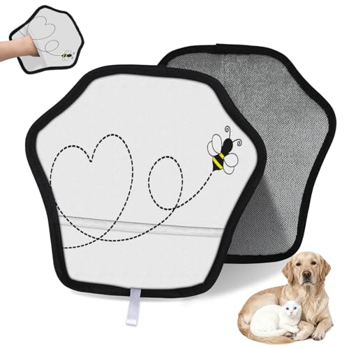 WowPrint Bee Gant d'épilation pour chat chien abeille cœurs réutilisables électrostatiques gants brosse outil pour canapé, vêtements, tapis, meubles, siège de voiture