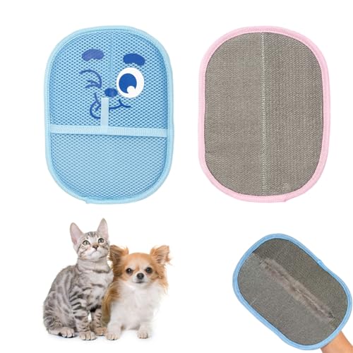 Fyearfly Lot de 2 Gants de Toilettage Double Face pour Animaux de Compagnie, Gant Anti-Poils Réutilisable Écologique Animaux, Gant Brosse Chat pour Canapé Meubles Tapis Siège Auto