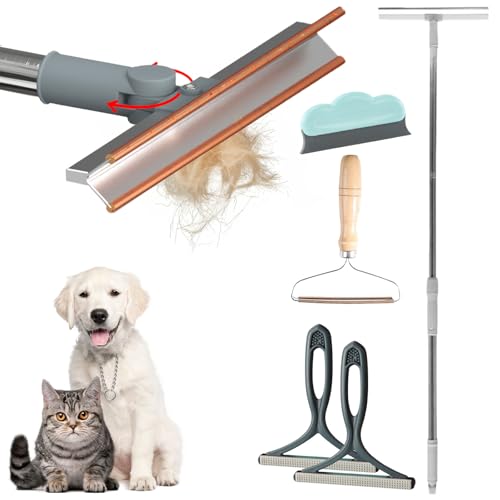 Lot de 5 râteaux à moquette pour épilation d'animaux de compagnie avec manche long réglable, outil d'épilation de poils d'animaux de compagnie, outil de brosse pour tapis, tapis, canapé, grattoir pour