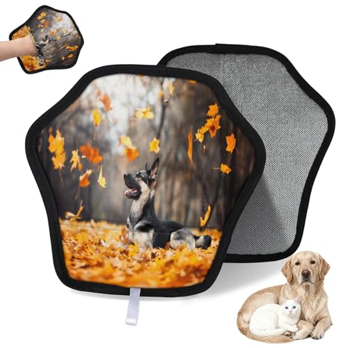 WowPrint Lot de 2 gants d'épilation de berger en forme de feuilles volantes d'automne pour chat et chien, réutilisables, électrostatiques, brosse pour canapé, vêtements, tapis, meubles, siège de